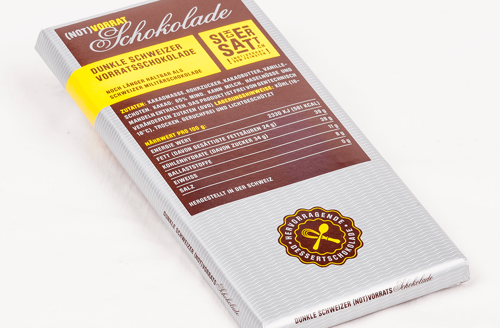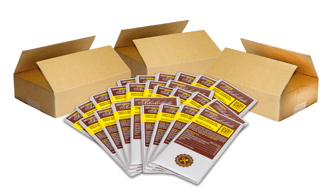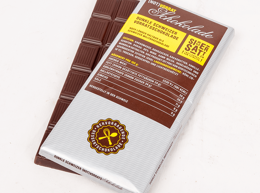 With its fine sweetness and the rounded aromas, our chocolate also convinces in taste and is therefore much more than “just” Emergency food. It is also very popular as a dessert or as a reward “in between”. Convince yourself!