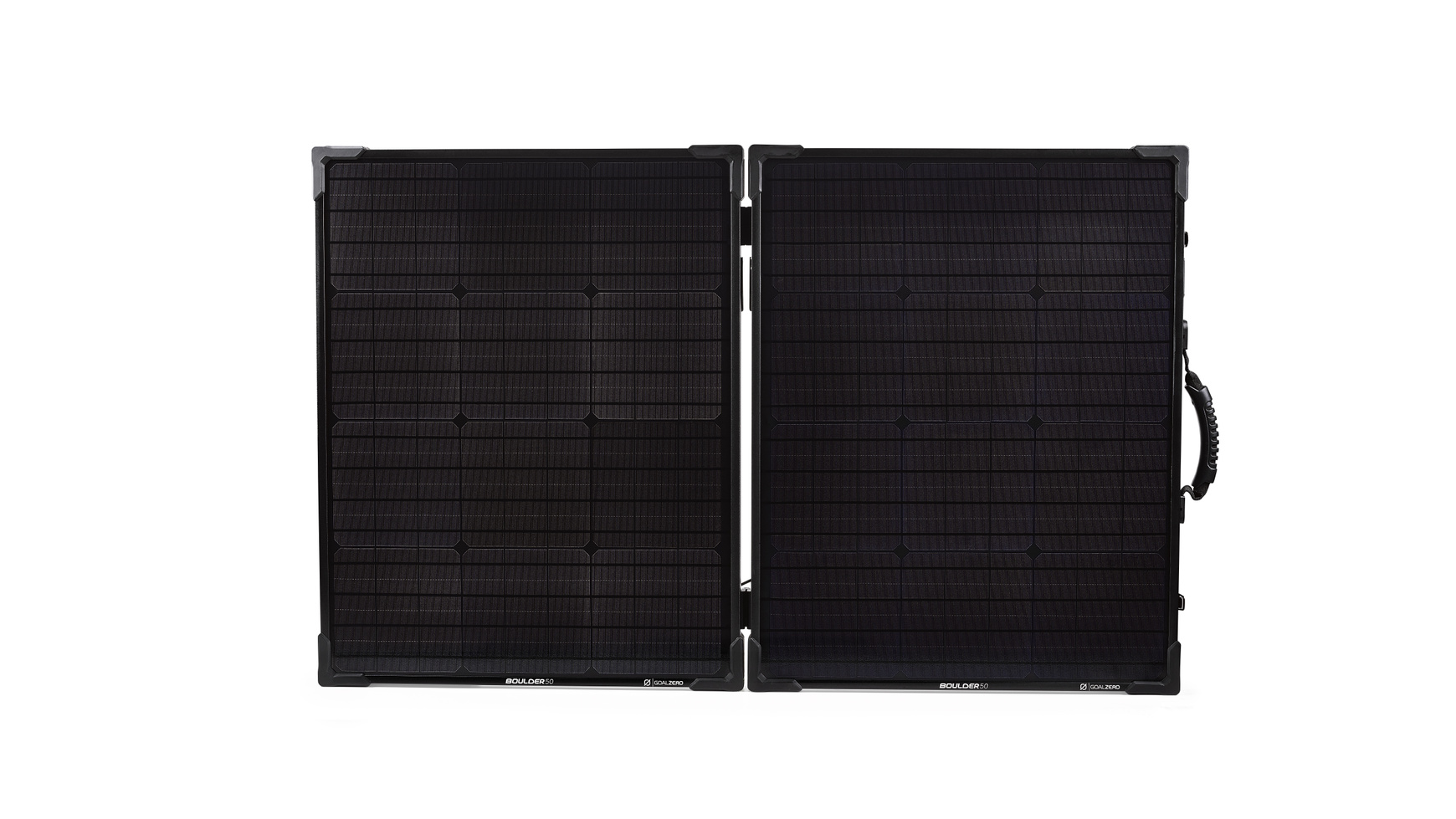 Built with tempered glass and a strong aluminum frame, this durable panel withstands heavy-duty use. A hinged design and canvas bag make for easy carrying to help keep your gear charged on the move. 100 total Watts – two 50-Watt panels (14-21.5V) chained together and connected by a hinge. Built with strong tempered glass and an aluminum frame with added corner protection.Included is a protective canvas bag for easy transport and carrying.