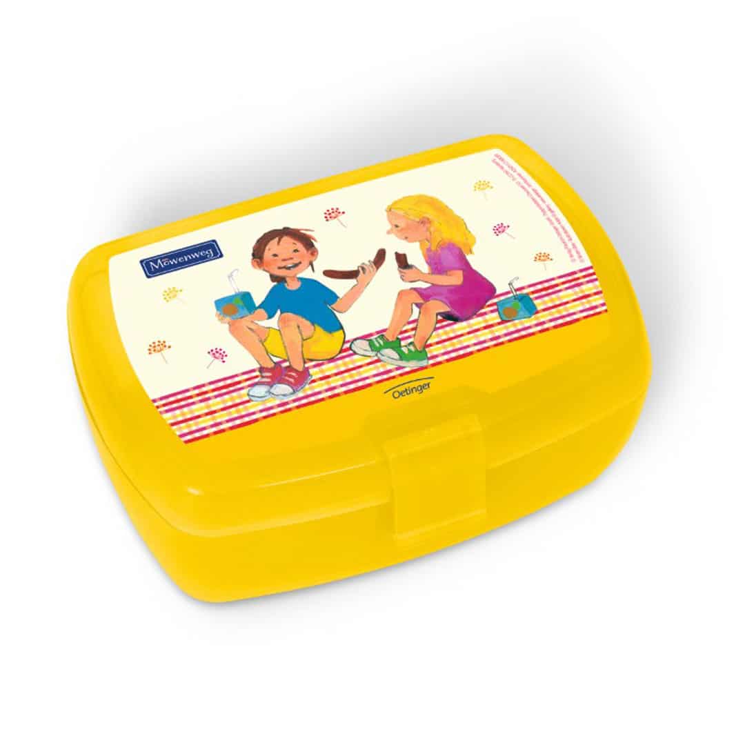 Lunchbox mit Motiv der beliebten Buchreihe „Wir Kinder vom Möwenweg“ und mit herausnehmbarem Rohkostfach.