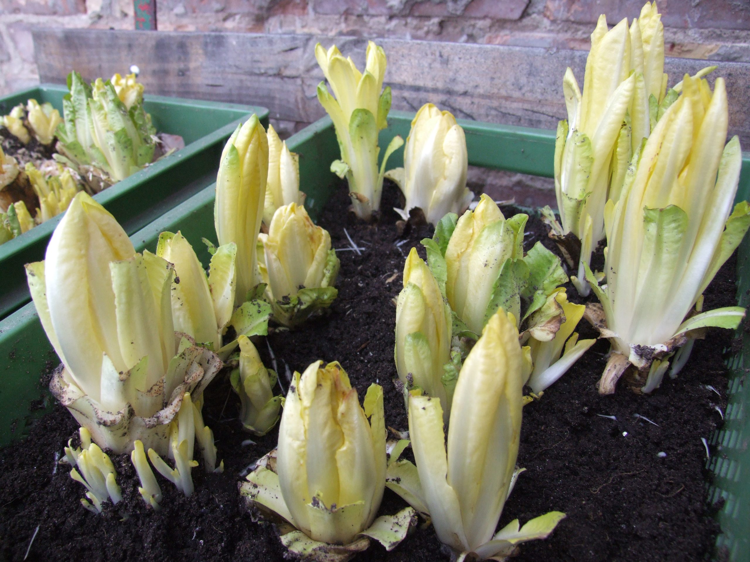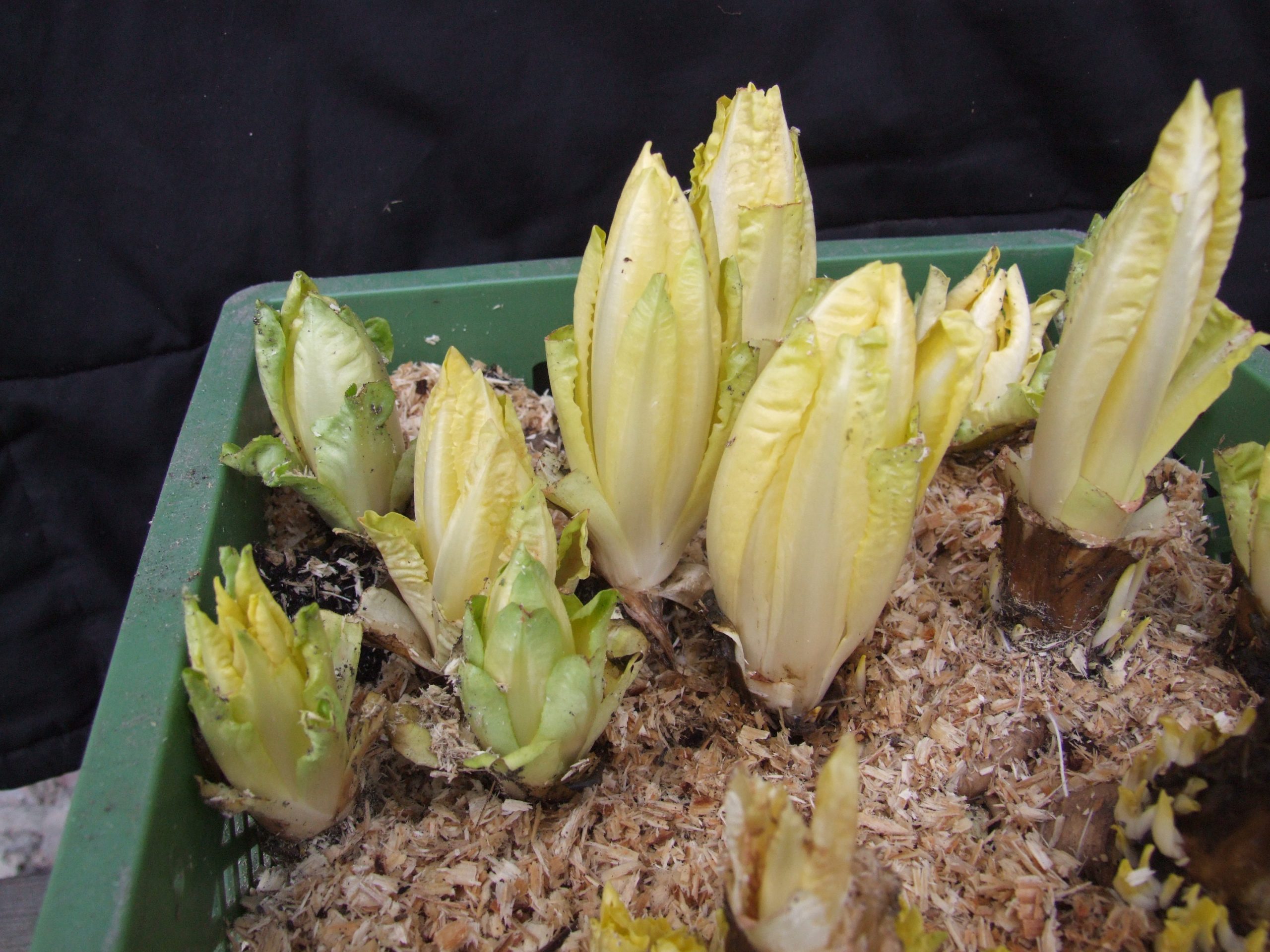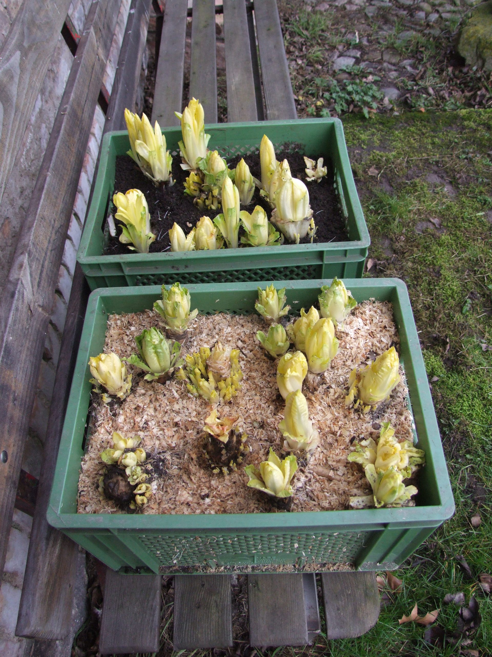 Treiben: Ab Dezember in einem großen Blumentopf mit feuchtem Sand. Einen Blumentopf umgedreht als Deckel. Es sollte dunkel und warm (18 Grad) sein, dann wachsen die mehr oder weniger großen Knospen.