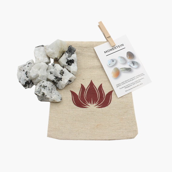 Die Mondstein Rohsteine im Leinenbeutel können für vielfältigste Dekorationen oder Heil-Anwendungen verwendet werden.