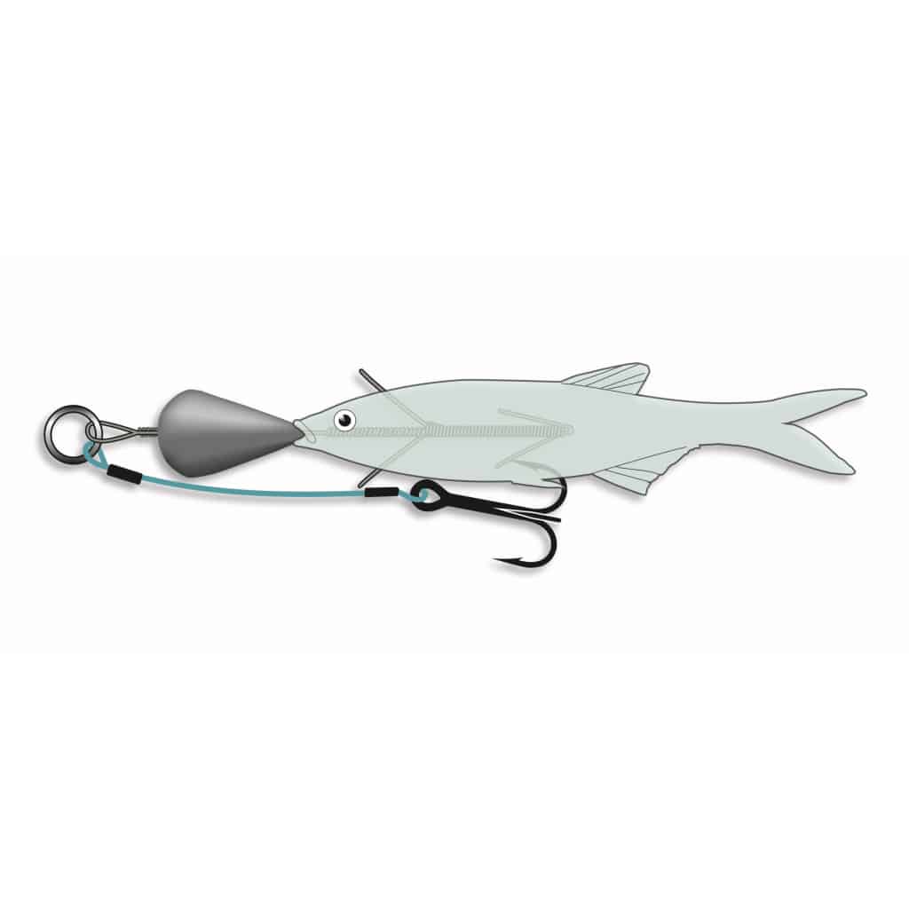 Forellen Spezial-System für toten Köderfisch Mit diesem Forellen-Spezial-System können ,kleine“ Köderfische den Forellen naturgetreu präsentiert werden. Hierzu wird das System im Maul des Köderfisches fixiert und der gewünschte Stinger (2 Längen/Größen im Set) im Bauch- oder Rückenbereich des Köderfisches verankert. Die Widerhaken verhindern ein Lösen des Köders während des Wurfes. Auch für Barsch und Zander ein super einfaches und erfolgreiches System!