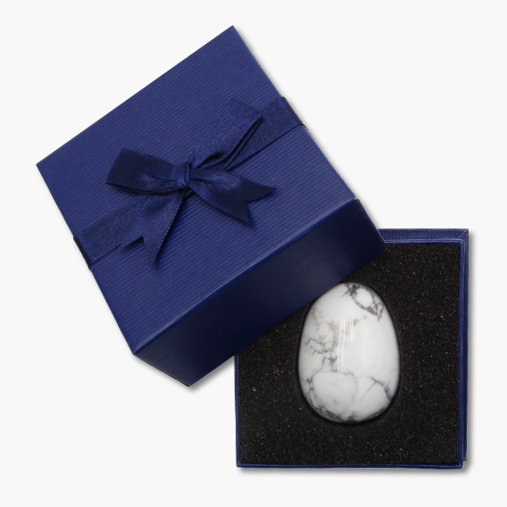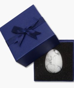 Diese edle Geschenkbox strahlt durch ihr tiefblaues Äußeres Eleganz aus. Eine feine Schlaufe ziert den Deckel der Box. Mit ihrer rechteckigen Form liegt sie angenehm in der Hand. Die Box ist innen mit Schaumstoff ausgestattet, der das darin eingebettete Edelstein-Ei sanft umhüllt. Die Edelstein-Eier (ca. 35 x 48cm) passen exakt in die Mulde, welche Stabilität und Schutz bietet.