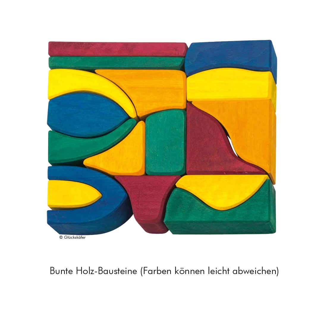 Die Bausteinsets sind erhältlich in bunt oder naturbelassen (bitte auswählen).