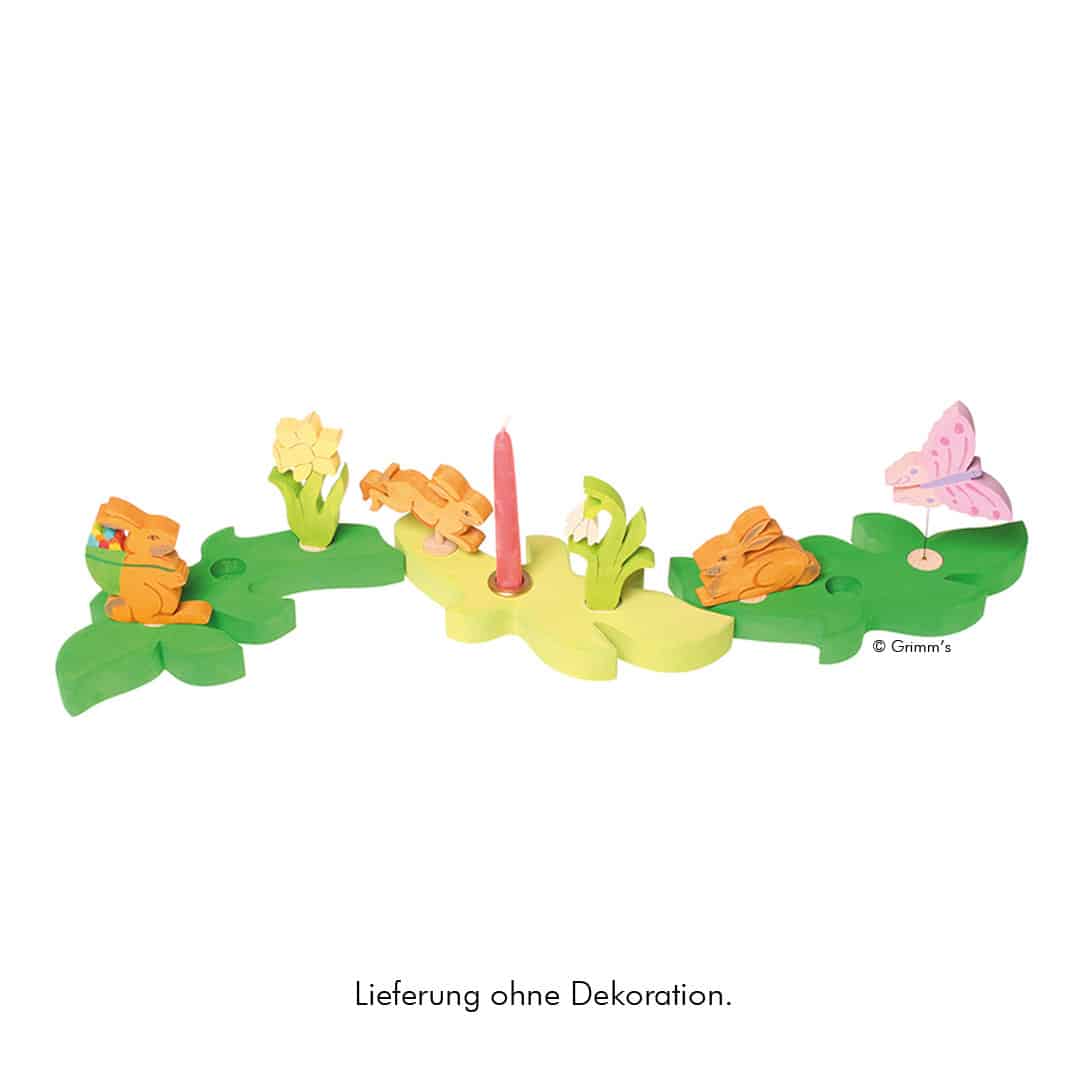 Grimms Lebenslichter erfreuen sich großer Beliebtheit, wie auch die Geburtstagsringe. Der Zweig eignet sich nicht nur zu Geburt, Taufe und zum Geburtstag als schöne Tischdekoration, sondern ist, bestückt mit Figuren der Jahresezeit entsprechend, auch hervorragend geeignet z.B. also Osterdekoration oder zu einer Festlichkeit im Frühling. Mit dem passenden Kerzenhalter – einem Stecker aus Messing oder Aluminium, der genau in die vorgestanzten Löcher passt – lassen sich neben den Figurensteckern auch wunderbar Kerzen hinzufügen. Zum Geburtstag kann der Zweig mit Zahlensteckern ergänzt werden.