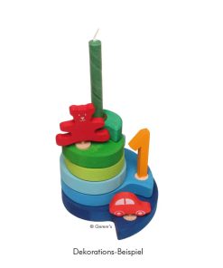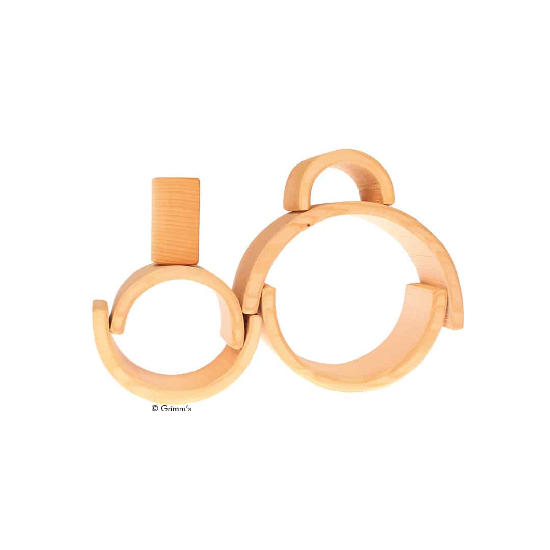 Ab dem sitzenden Alter, also ab etwa 7-8 Monaten, kann das Baby oder Krabbelkind damit bauen, stapeln, legen, sortieren und was ihm noch einfällt. Noch etwas später wird das Kleinkind Türme und lustige Häuser und Skulpturen bauen, und noch später können die halbkreisförmigen Bauelemente dann als Brücke oder Tunnel für Autos oder sogar als Puppenwiege für die Biegepuppen aus der Puppenstube oder als Puppenhaus-Möbel dienen…