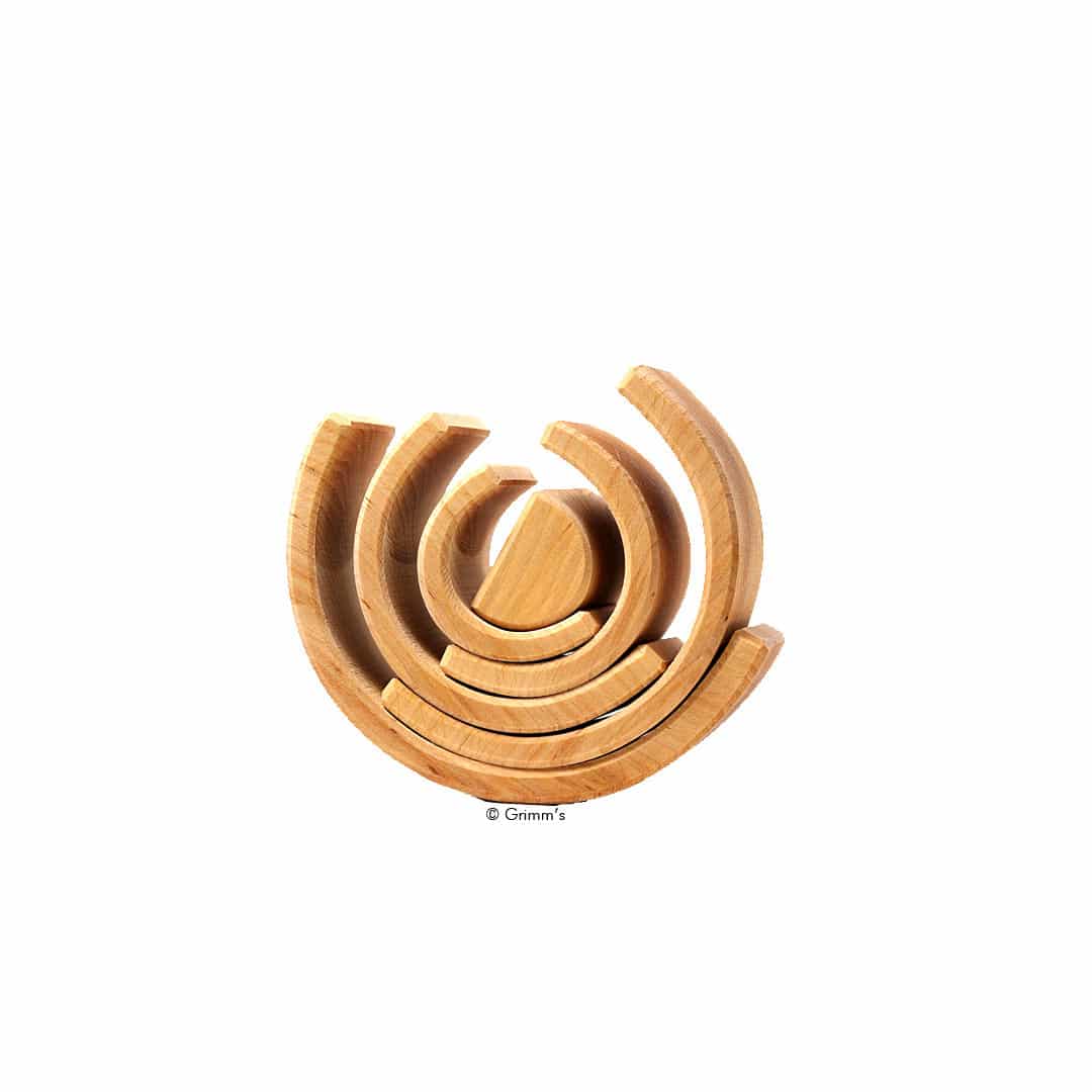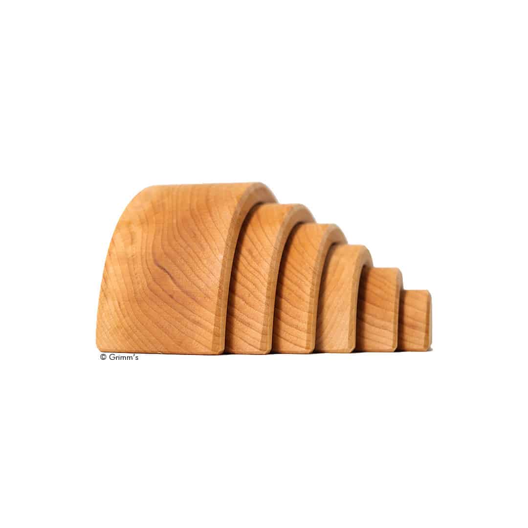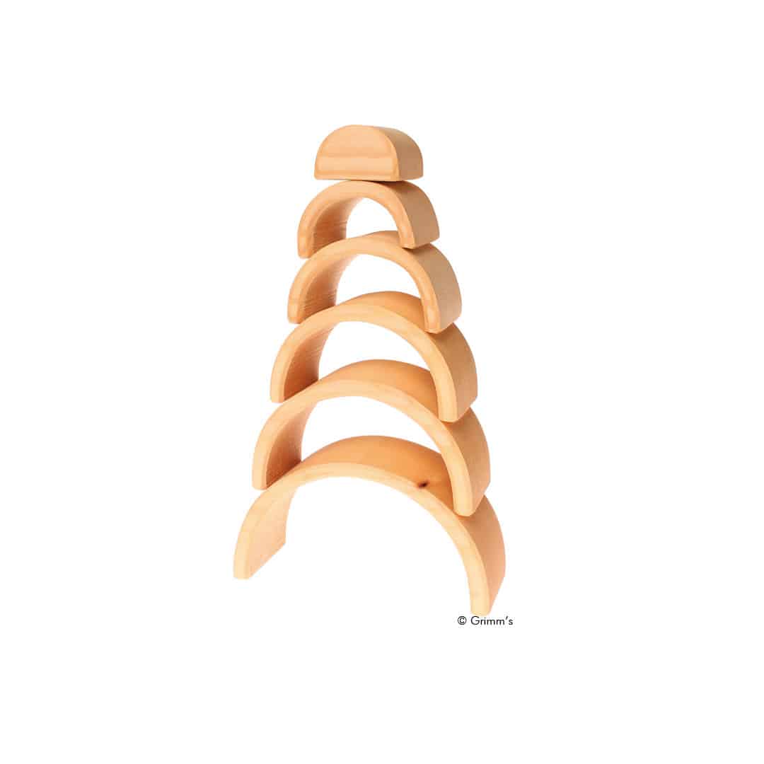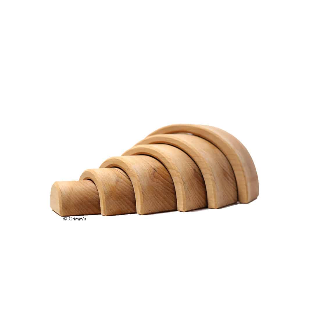 Holzspielzeug Bogenspiel mit 6 naturbelassenen, geölten und halbrunden Holzbausteinen. Zum Legen, Stapeln, Bauen und vieles mehr…