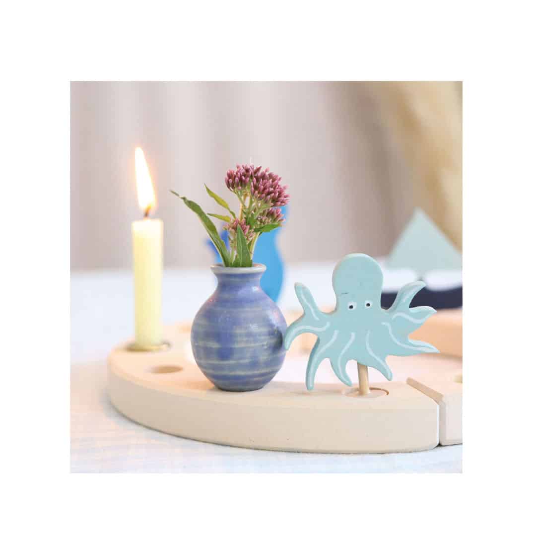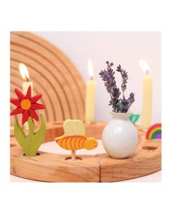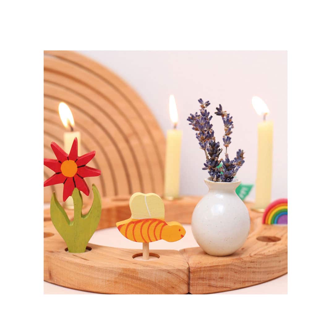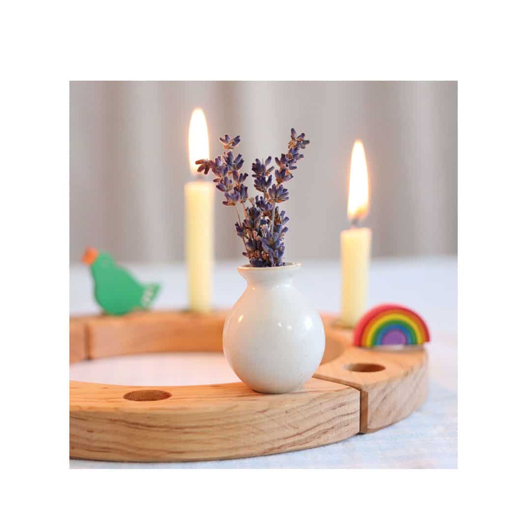 Kleine Vase von Grimm’s als Stecker und Blumenvase auf dem Geburtstagskranz, dem Lebenslicht oder auf der Jahreszeitenspirale.