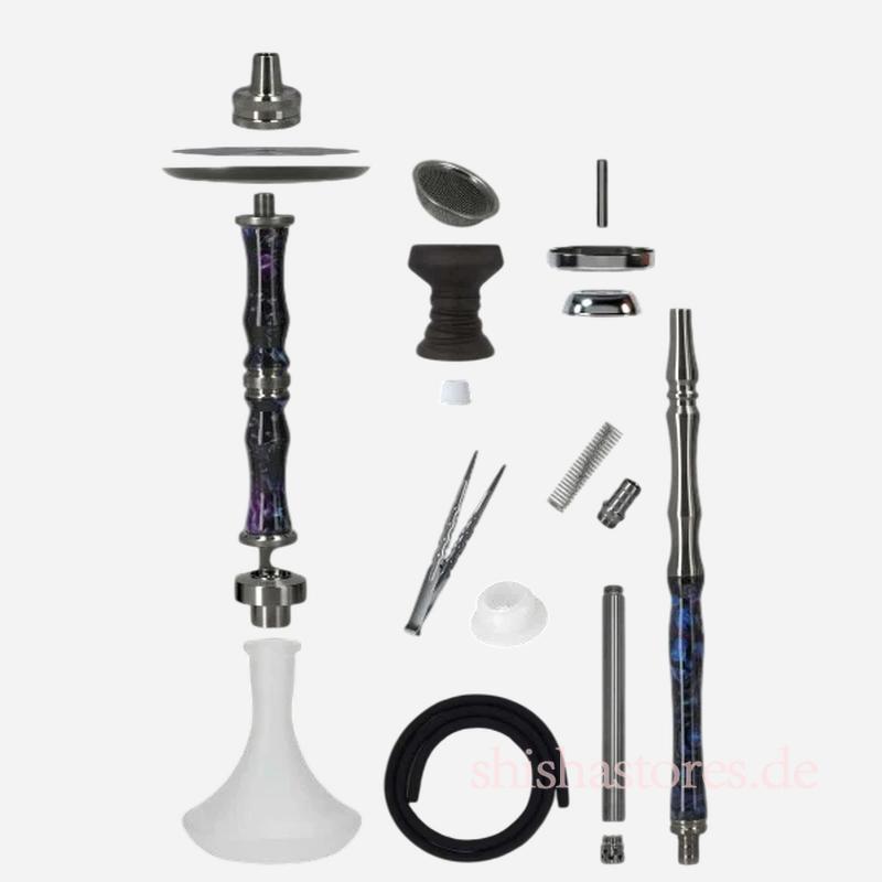 | Lieferumfang | 1x Kaminkopfset (Tonkopf, Kopfdichtung, Kaminaufsatz, Kopfsieb) 1x Kopfadapter inkl. Molassefänger 2x Kohleteller (Ø 18 cm & 21 cm) 1x Rauchrohr mit zwei farblichen Sleeves 1x Wasserrohr mit abschraubbarem Diffusor 1x Glasbowl 1x Rauchbase (Stecksystem) 4x Ausblasadapter 1x Schlauchset (Alumundstück, Silikonschlauch, Schlauchfeder) 4x Ventilkugeln (6 mm) 1x Kohlezange 4x Dichtungen |