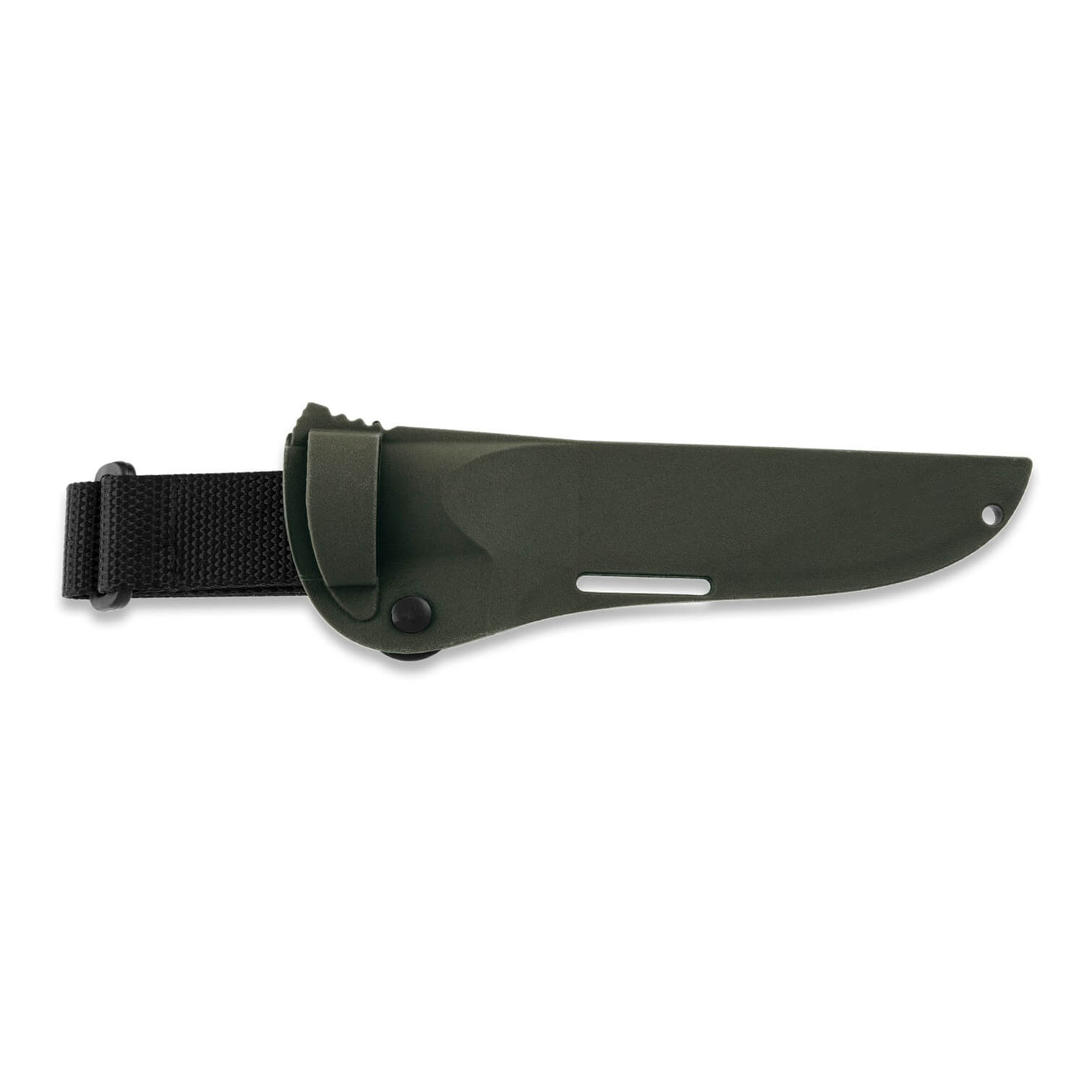 Der EasyLock-Mechanismus in der Kompositscheide verriegelt das Messer sicher an seinem Platz. Die Kompositscheide lässt sich leicht an verschiedenen Wander- und Outdoor-Ausrüstungen befestigen. Sie widersteht extremen Temperaturen, Chemikalien und starken Stößen, wodurch sie auch unter anspruchsvollen Bedingungen langlebig und zuverlässig ist. Die Scheide aus Kompositmaterial ist leicht zu reinigen und daher mühelos zu pflegen. Die Scheide ist für den beidhändigen Gebrauch konzipiert.