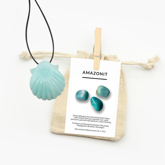 Jakobsmuschel Anhänger gebohrt aus Amazonit