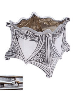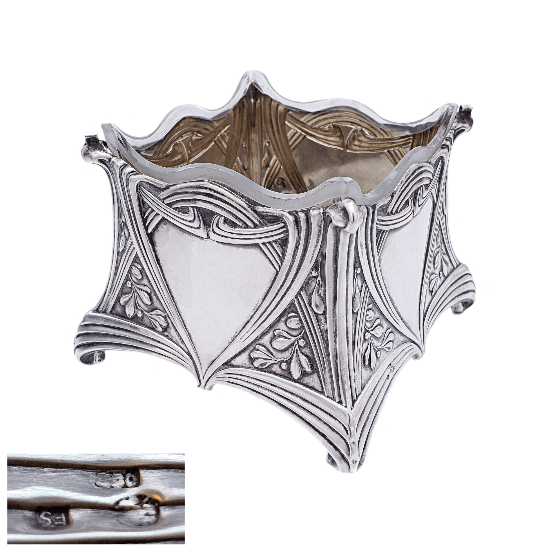 Silberwaren aus der Zeit des Jugendstils zeichnen sich durch eine außergewöhnliche Kombination von Eleganz und organischen Formen aus. Der Jugendstil, auch als Art Nouveau bekannt, war eine Kunstbewegung, die sich durch florale, geschwungene Linien und naturinspirierte Motive auszeichnete. Silberwaren wie Besteck, Teekannen, Schmuckschatullen und Dekorationsgegenstände waren oft verziert mit stilisierten Pflanzen, Insekten, geschwungenen Linien und abstrakten Formen, die den natürlichen Fluss der Natur nachahmten.