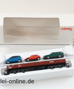 Artikel: Märklin H0 | 44732 Niederbordwagen Rlmms | Autotransportwagen beladen mit 3 Modellautos in OVP