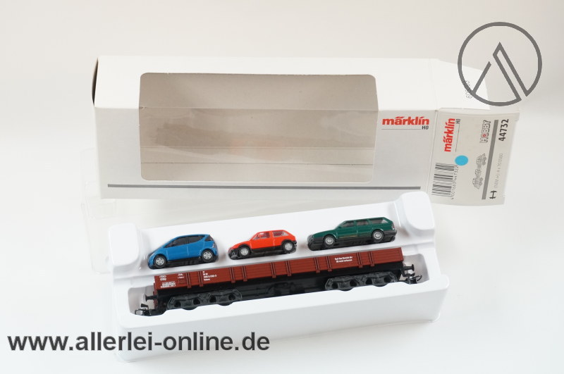 Lieferumfang: 1 Stück Märklin H0 | 44732 Niederbordwagen Rlmms | Autotransportwagen beladen mit 3 Modellautos in OVP ,wie abgebildet