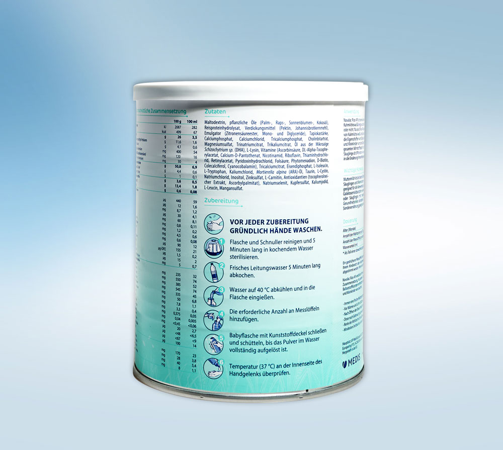 - Formulierung auf rein pflanzlicher Basis als Alternative zur Milchnahrung.
