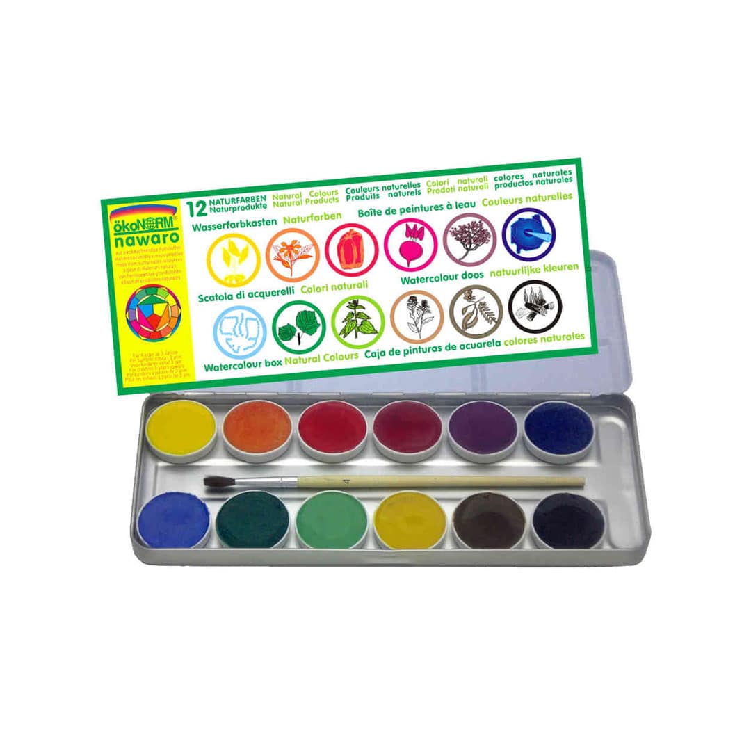 12 intensive, natürliche Wasserfarben im Farbkasten, einzeln herausnehmbar,