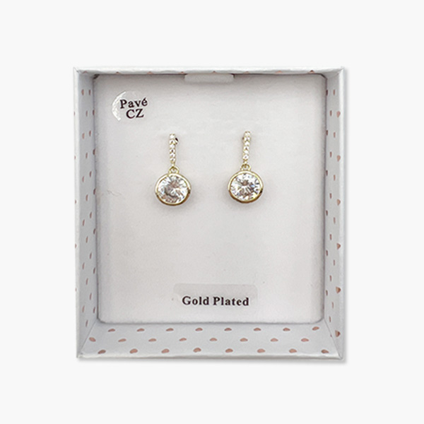 Ohrstecker hängend mit Glitzerstein goldfarben in Geschenkbox