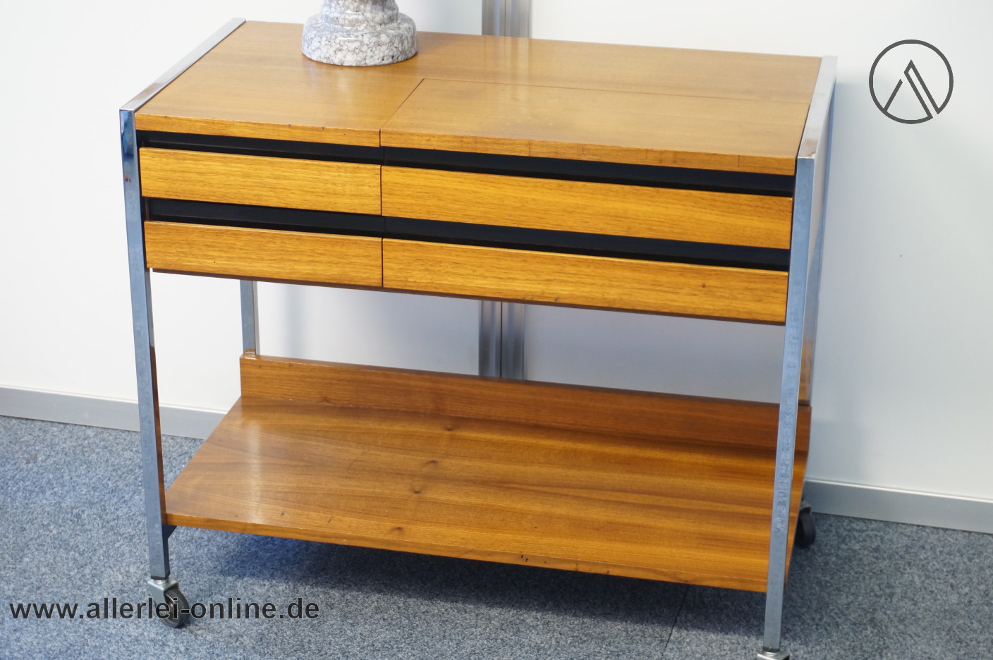 Artikel: Phonowagen | Phonomöbel Beistelltisch – Rollwagen | Chromstahl – Vintage 60er Jahre