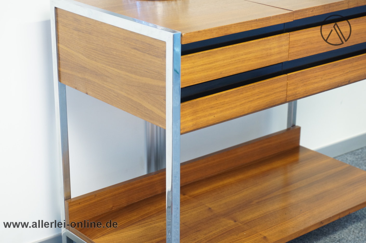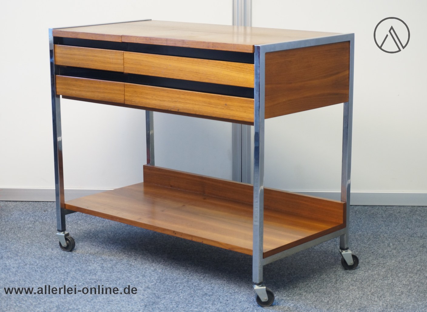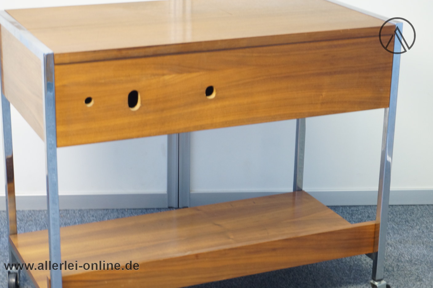 TV-Tisch – Phonowagen – Beistelltisch auf Rollen aus den 60er Jahren mit Chromstahl Rahmen