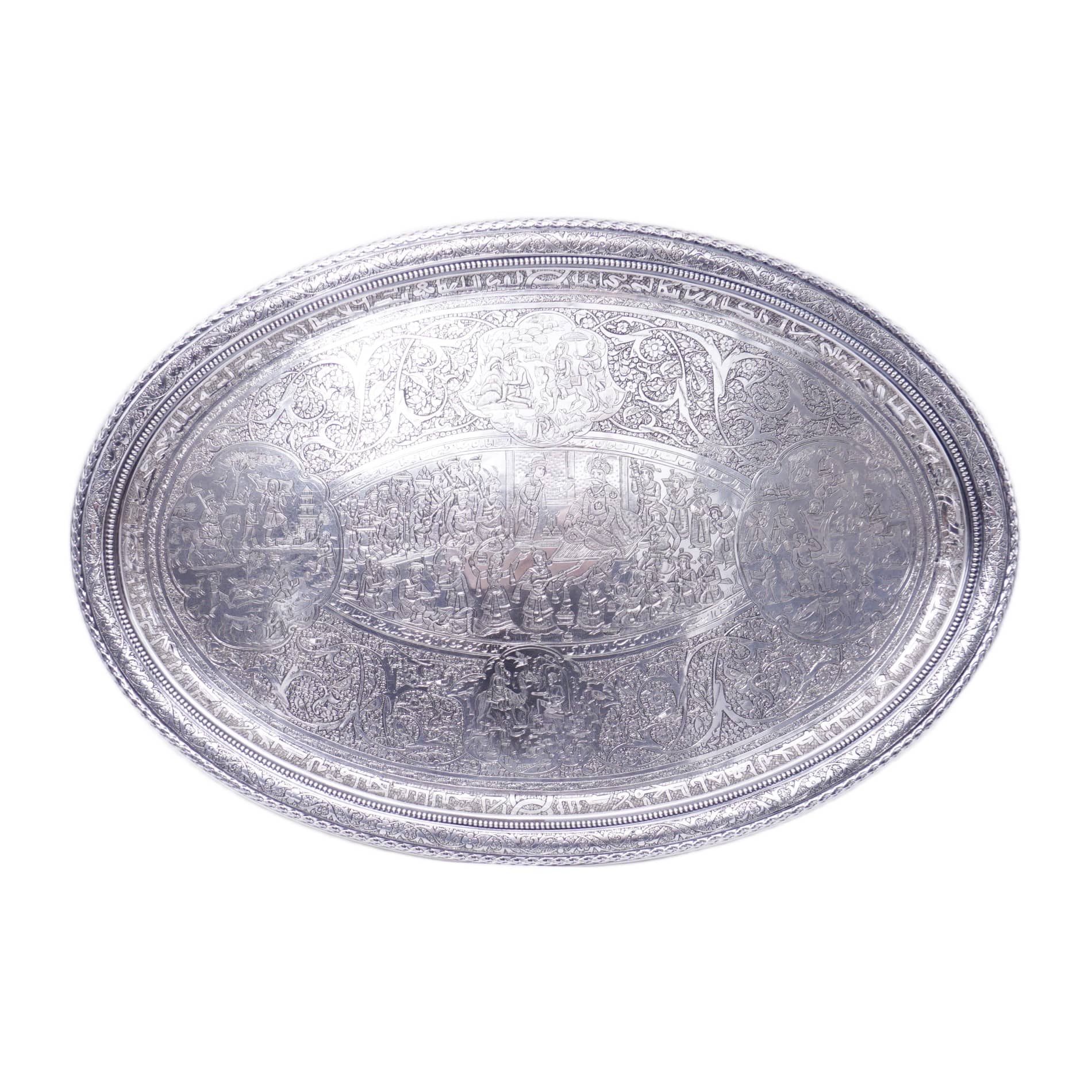 Dieses Tablett ist nicht nur ein Gebrauchsgegenstand, sondern ein kunsthistorisches Zeitdokument – ideal für Sammler orientalischer Silberkunst oder als einzigartiges Schaustück.