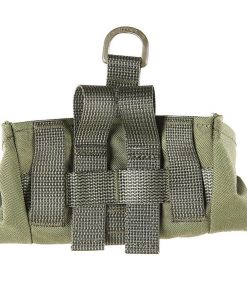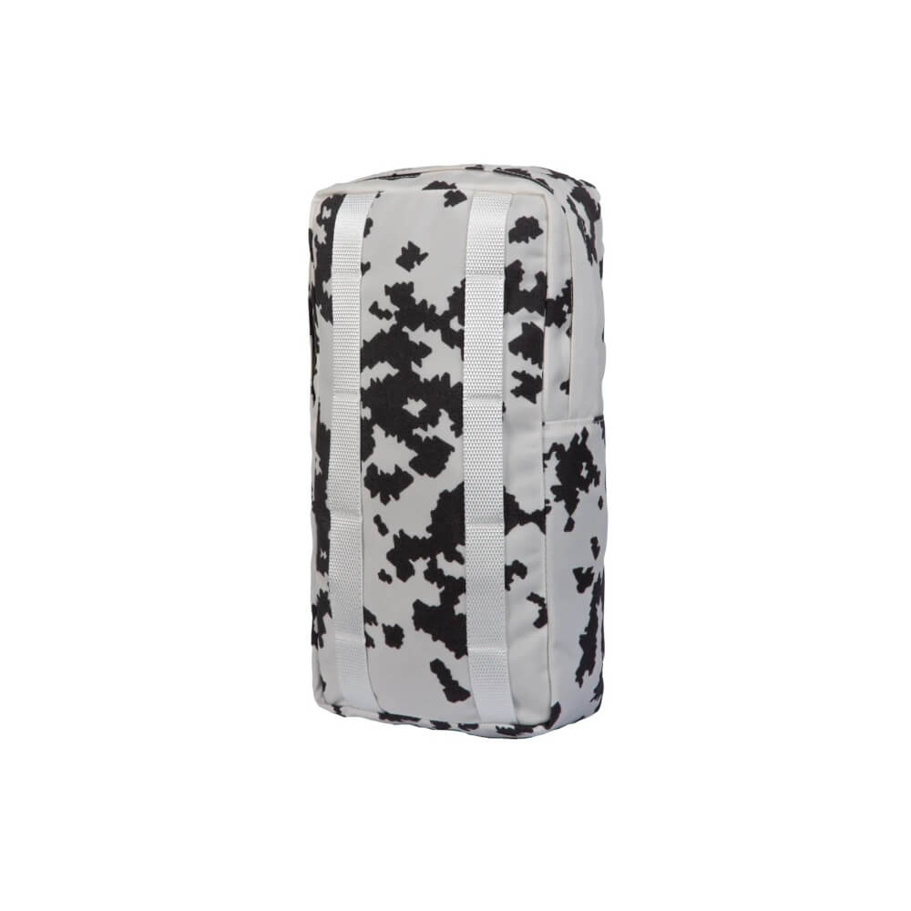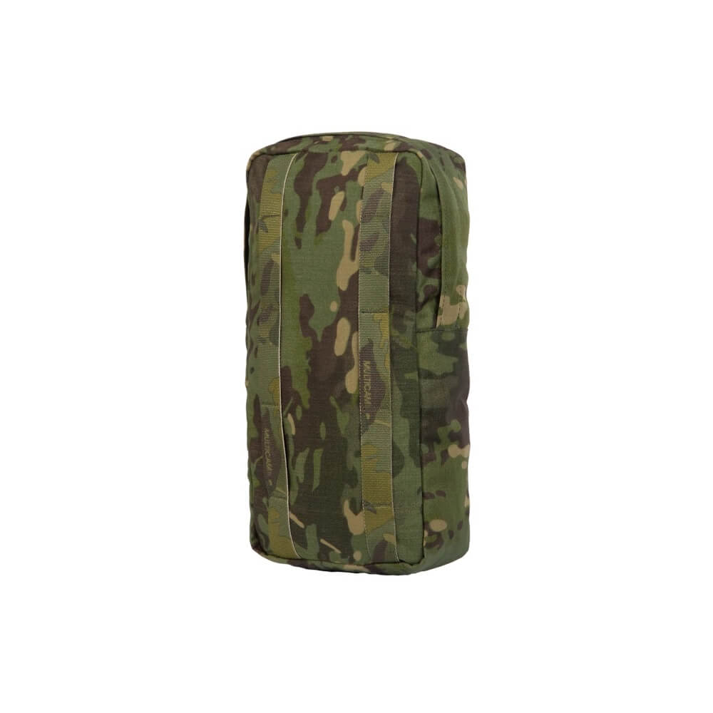 Eine 25-mm-Gurtbandschlaufe und ein D‑Ring oben an der hinteren Innenwand ermöglichen es, kleine und wichtige Dinge zu sichern, das flache hintere Fach bietet eine rudimentäre Organisation für kleinere Dinge. Der Boden und die untere Hälfte der Seitenwände sind mit 210D-Polyamid ausgekleidet, um zusätzliche Abriebfestigkeit zu gewährleisten. Eine Tülle sorgt für die Ableitung von Wasser, das in die Tasche eindringen könnte. Die beiden vertikalen Befestigungsgurte lassen eine ca. 9 cm breite Lücke zwischen sich, die es ermöglicht, Dinge wie Äxte, Angelruten usw. hinter der Tasche verstaut zu tragen.