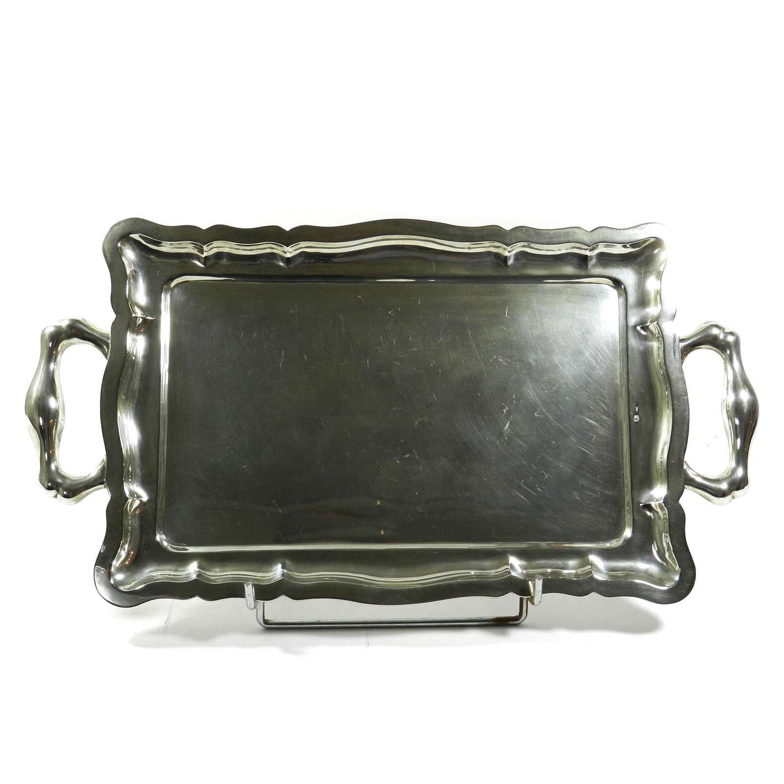 Silbertablett mit Griffen im Barockstil, Belgien um 1950/60
