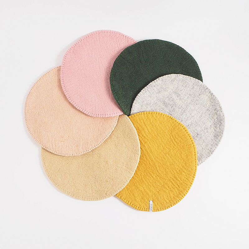 Fein gefilzte Sitzkissen, die in reiner Handarbeit hergestellt werden.