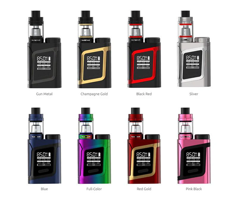 SMOK Alien Baby AL85 Kit mit TFV8 Baby-Tank – 3ml ist die Mini-Version von Alien 220W, mit kompakten Mini-Größe und Einhand zu halten, leicht zu tragen. Einschließlich der AL85 mod und 3ml TFV8 Baby Verdampfer. Angetrieben durch eine 18650 Zelle, die bequem durch die oben geladene Batteriekappe ersetzt werden kann, die maxmin Ausgabe bis zu 85w und stellt VW, TC, Gedächtnis-Modi zur Verfügung. Der TFV8 Verdampfer kann 3ml E – Saft halten, und Top füllen entworfen, Upgrade einstellbare Luftströmung System, dass Sie Wolke Tier und erstaunliche Dampfen Erfahrung bringen. Kommt mit 4 Farben, erhalten ist als ein Teil.