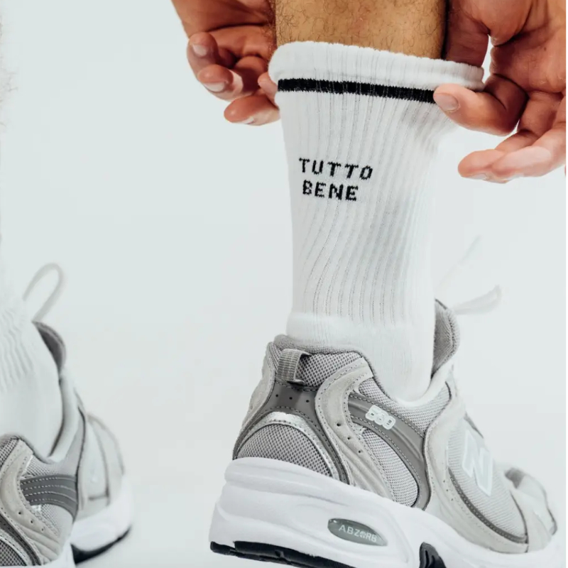 In Portugal produziert aus Bio-Baumwolle, extra verstärkt unter dem Fuß, ohne störende Nähte und mit eingewebtem “amore”.