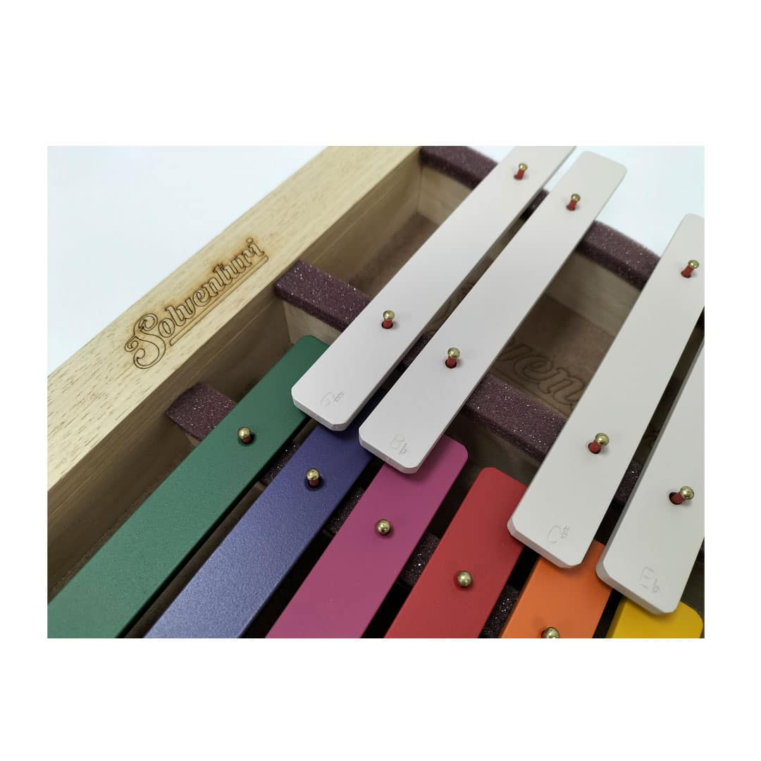 Solventuri Glockenspiel M-CSc: Sopran-Metallophon mit bunten Klangplatten (chromatisch von G2 bis Fis4),