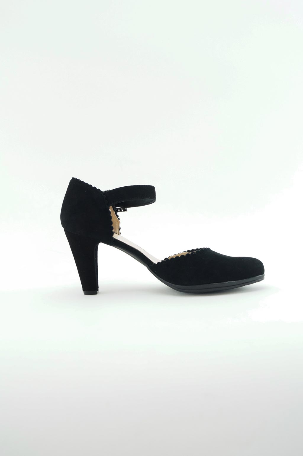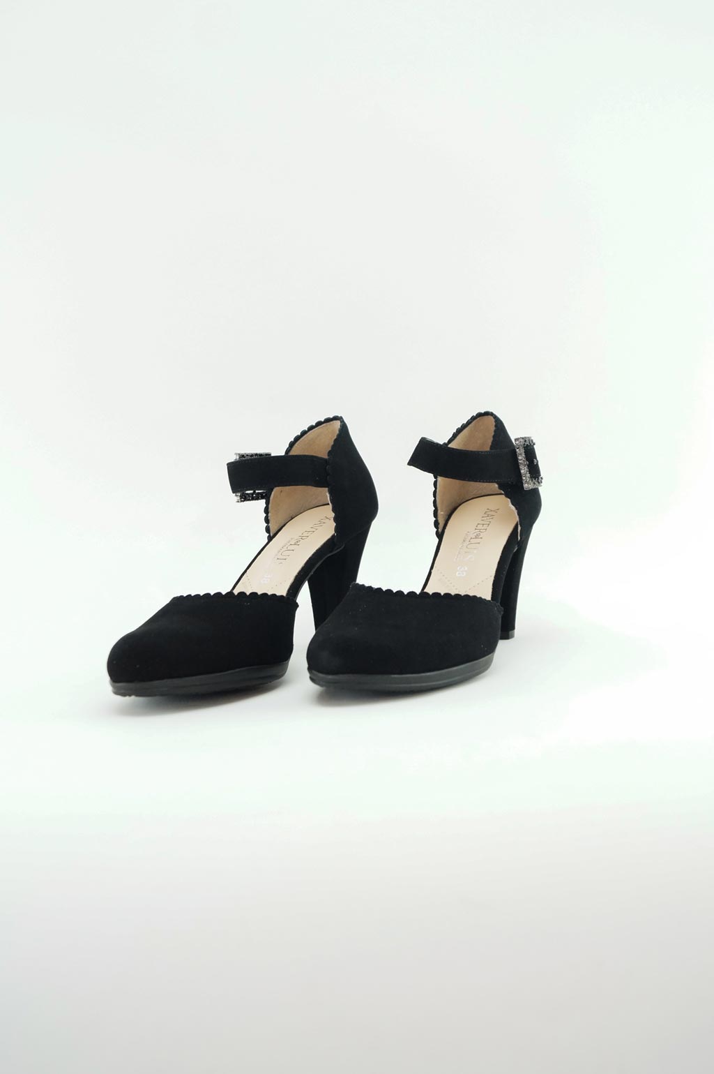 Trachtenpumps mit Schließe, Samtchevro schwarz