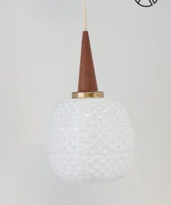 Vintage Teak Hängelampe | Glas Lampenschirm | Milchglas Pendelleuchte