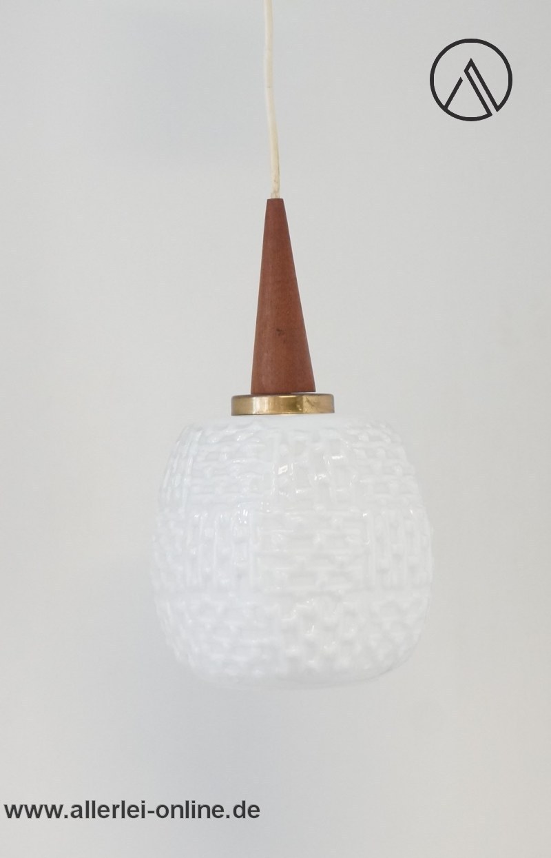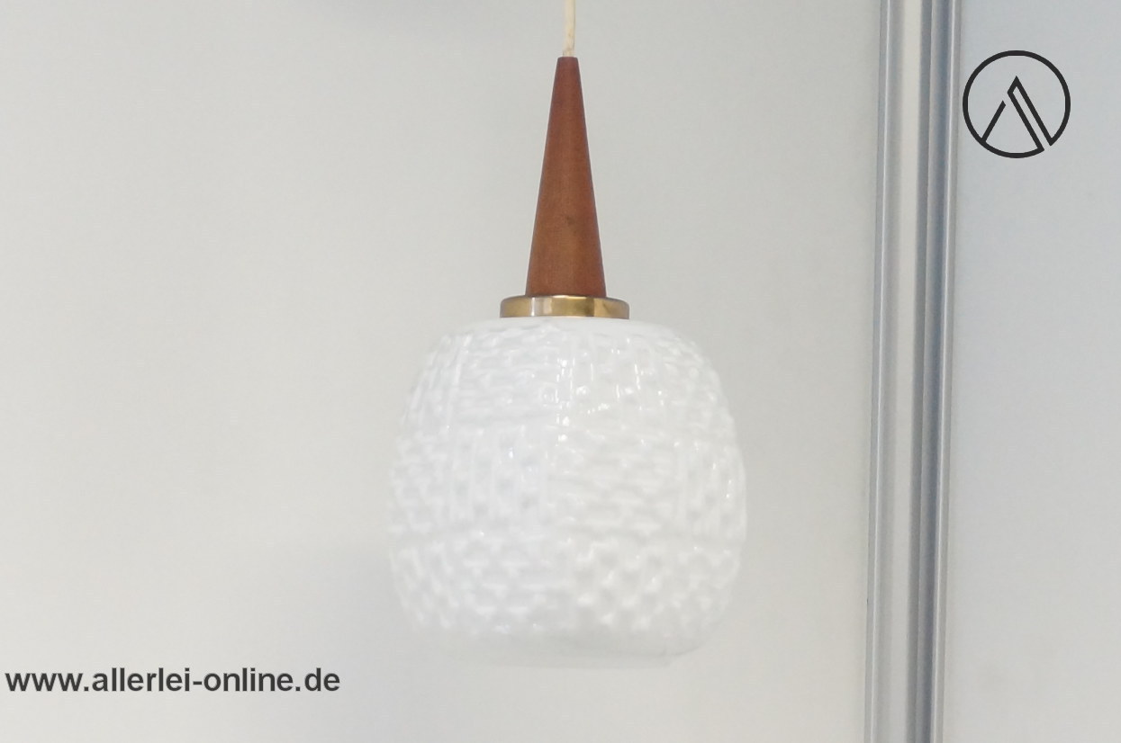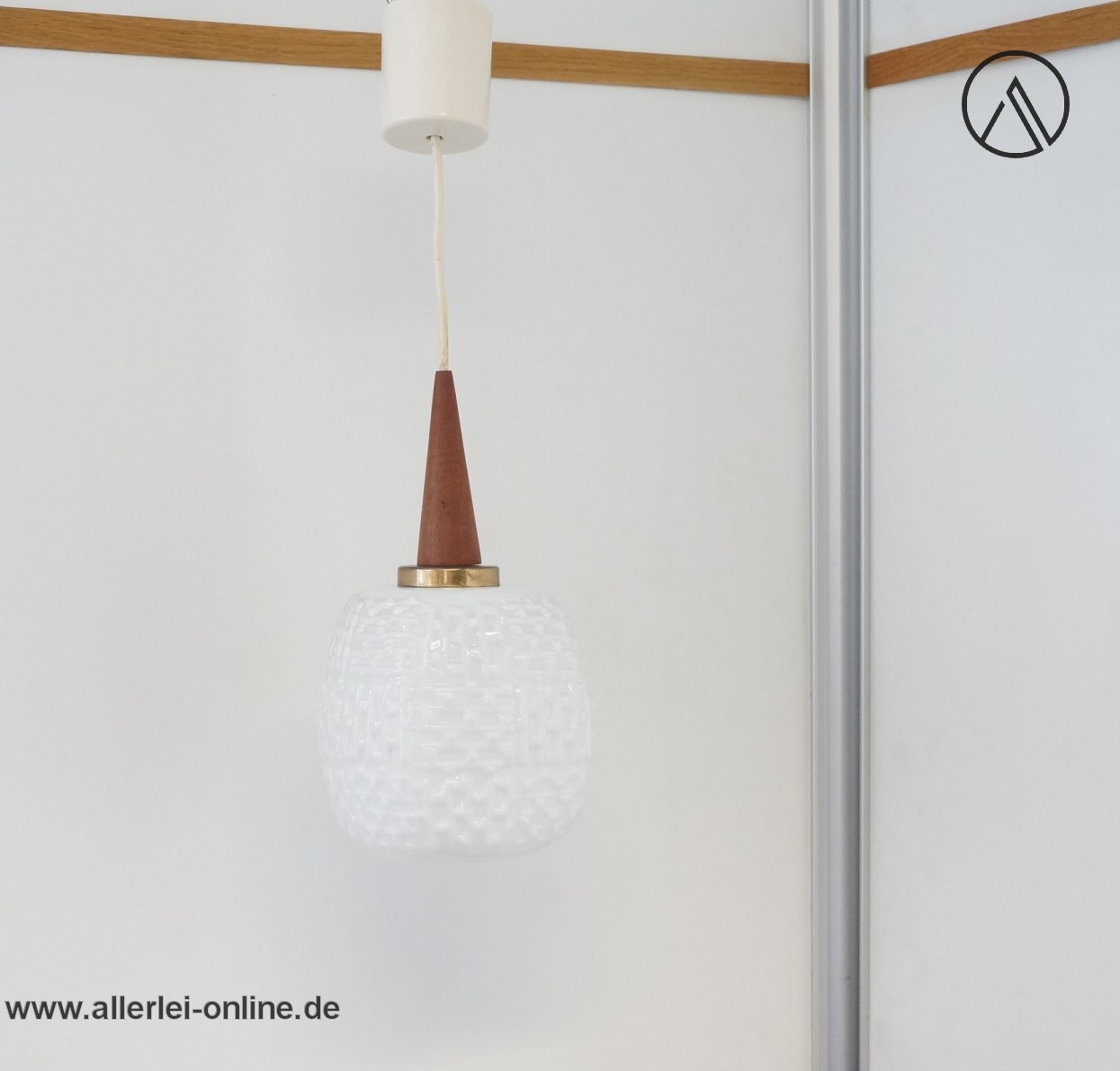 Vintage Teak Hängelampe | Glas Lampenschirm | Milchglas Pendelleuchte | Mid Century 50-60er Jahre
