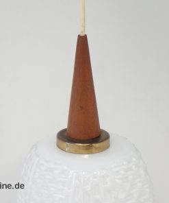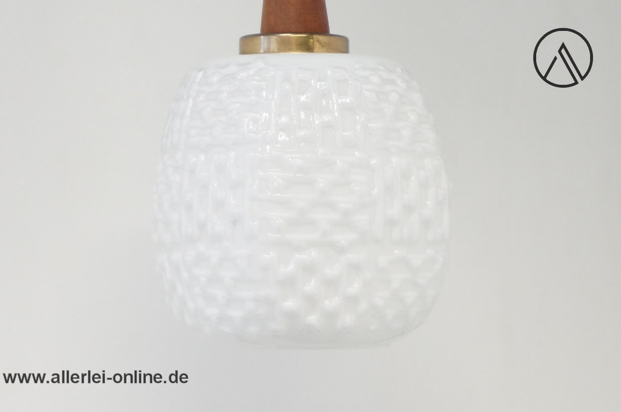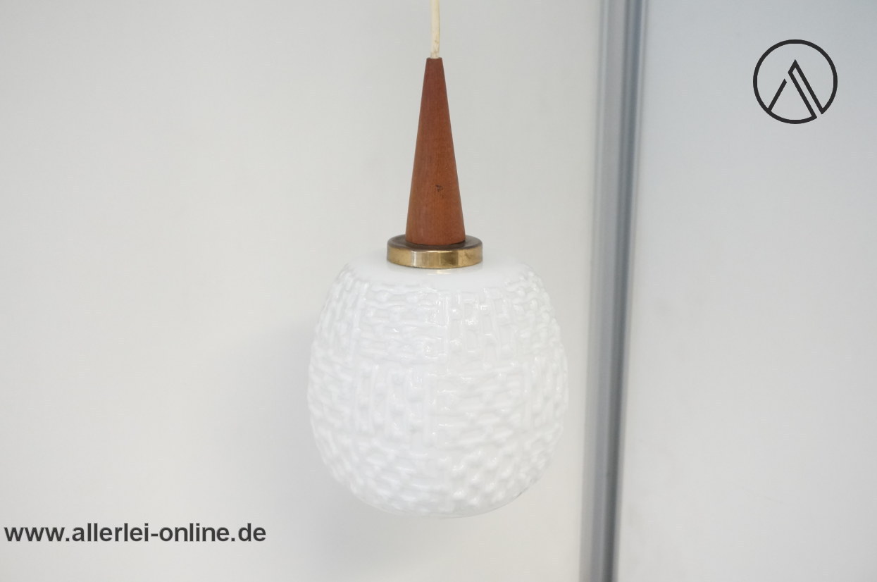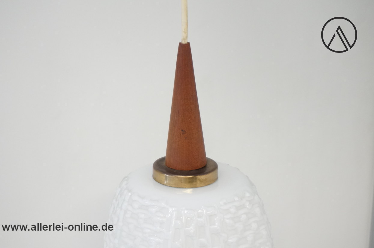Vintage Teak Hängelampe | Glas Lampenschirm | Milchglas Pendelleuchte | Mid Century 50-60er Jahre