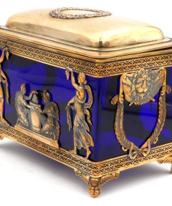 Antike Vermeil Silber Dose mit Glaseinsatz und Mythologischer Szene, Paris um 1880